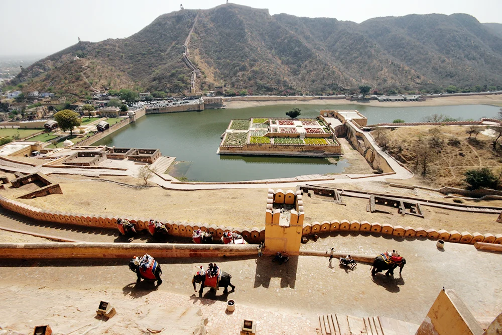 The Amber Palace, situated atop a hill, is another architectural marvel. As you approach the palace, you're greeted by the imposing Suraj Pol (Sun Gate), which leads to the main courtyard. Inside, the palace is a blend of Hindu and Mughal architecture, with its sprawling courtyards, intricate carvings, and shimmering Hall of Mirrors. Not far from here lies the Jal Mahal or Water Palace. Floating in the middle of the Man Sagar Lake, its serene beauty is magnified during the evening when it's illuminated, casting a golden reflection upon the tranquil waters.