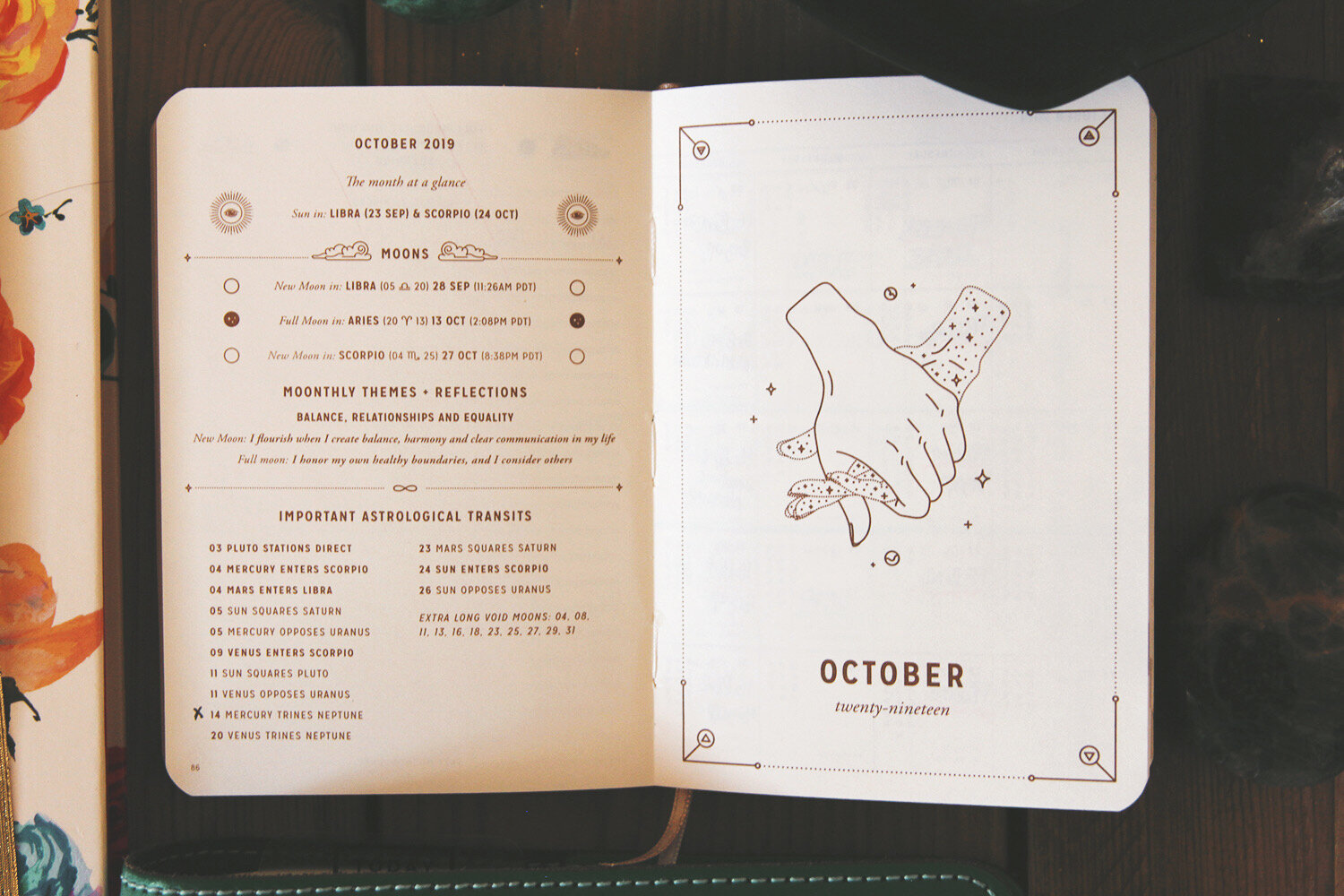 Je me laisse guidée par les positions des planètes, la Lune, pour tout ce qui est planification de décisions/dates clé. Et crois-moi, ça fonctionne plutôt. Je sais quel jour je serais plus productive, et celui où j’ai besoin de me poser.